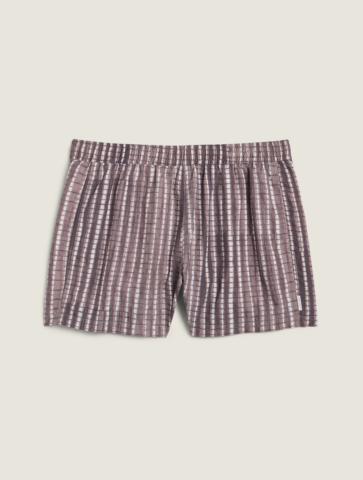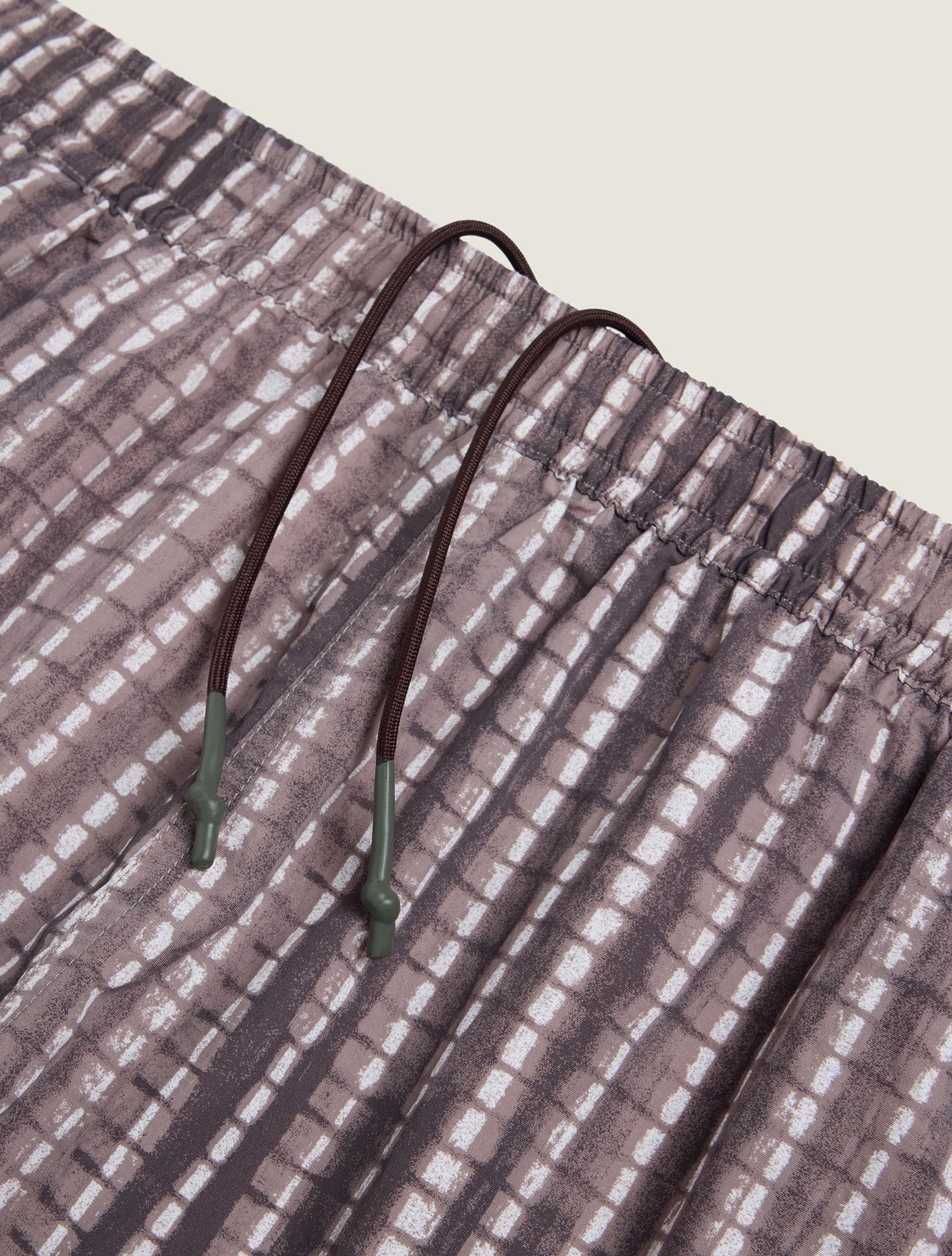 Sebastian 4” Printed Nylon Swim Trunks Batik Check, Driftwood