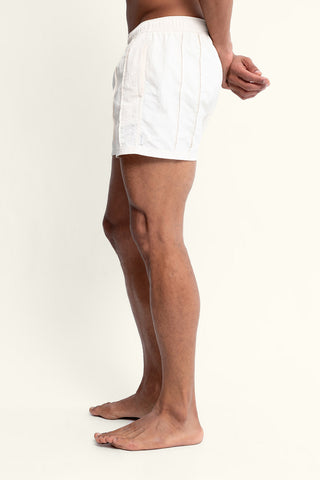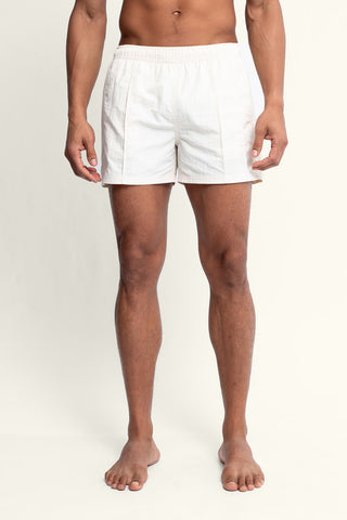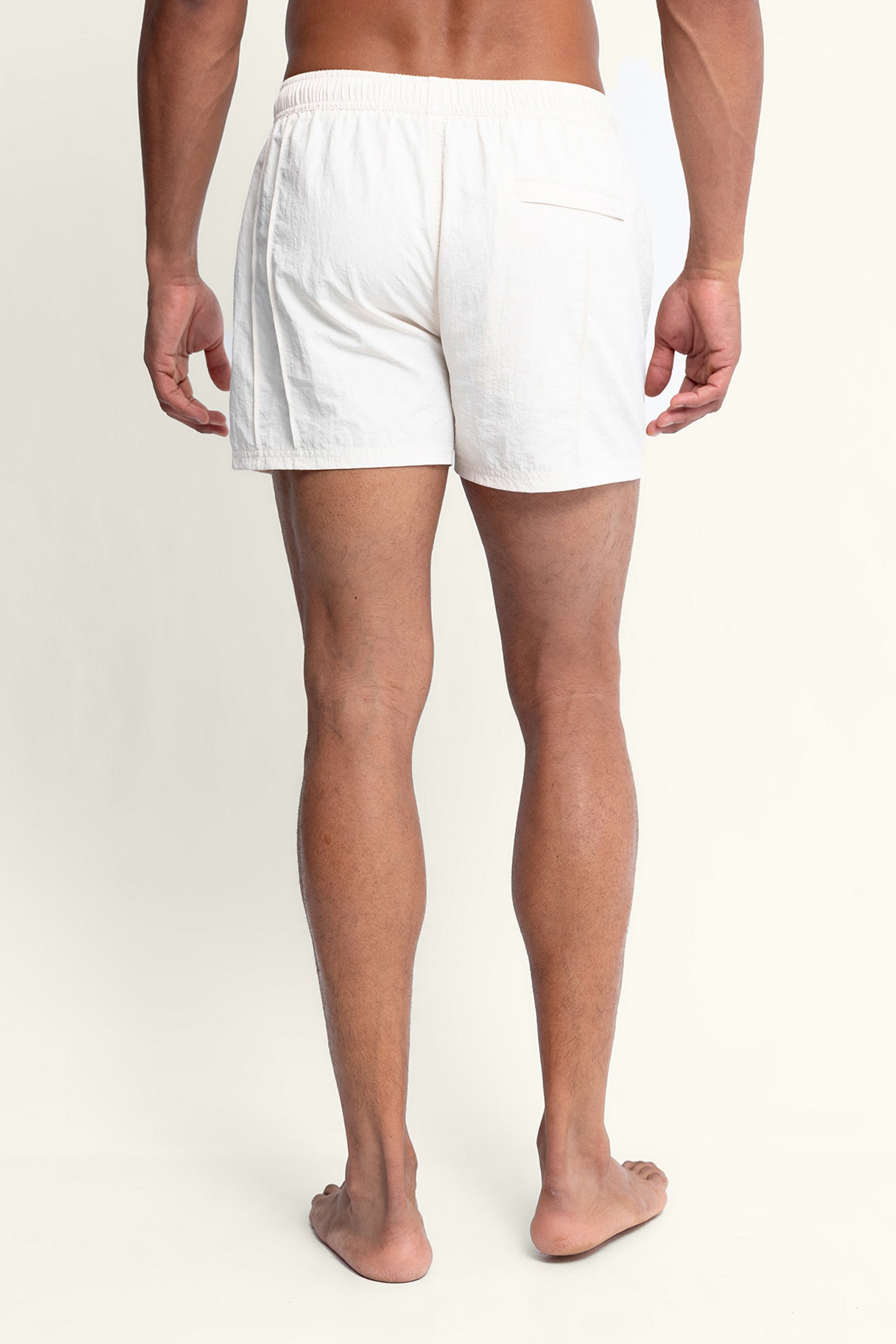 Crafted from premium cotton-touch nylon for exceptional comfort and durability, these swim trunks feature a signature vertical pintuck that adds understated texture and depth. The streamlined silhouette and quick-drying fabric allow for an effortless transition from swim to off-hours wear.