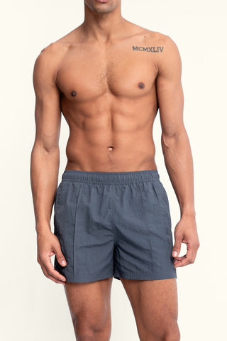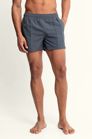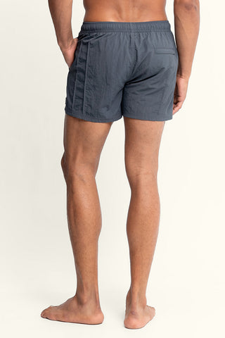 Sebastian 4” Vertical Pintuck Nylon Swim Trunks in Granite